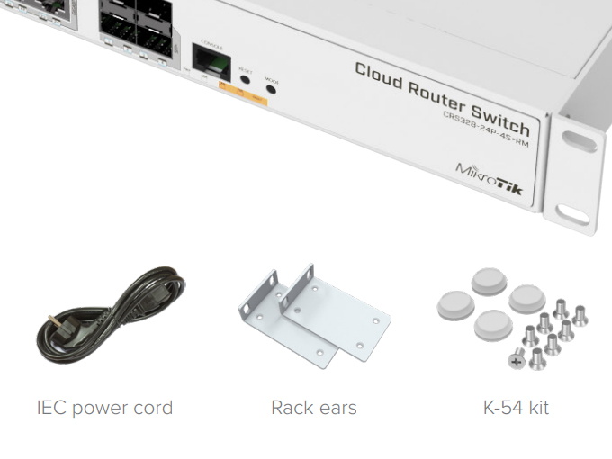 Switch CRS328 24 Port PoE với thiết kế dạng rack, kích thước 1U, có tai gắn tủ rack đi kèm, có thể để bàn hoặc lắp vào tủ rack, phù hợp lắp đặt triển khai cho hệ thống camera CCTV, lắp đặt cấp nguồn cho các AP wifi khi triển khai hạ tầng cho văn phòng, doanh nghiệp, khách sạn, trường học.