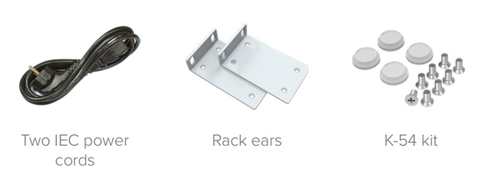 Thiết bị đóng gói bao gồm rackmount kit 1U với hai dây nguồn 100-240 V có chức năng chuyển đổi dự phòng. Cổng Console RJ45 để quản lý và gỡ lỗi, đồng thời có thể tùy chỉnh nút Mode để thực thi bất kỳ lệnh RouterOS nào.