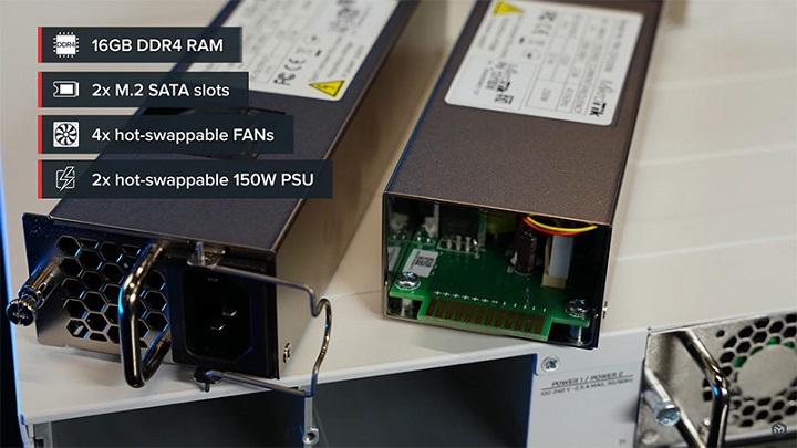Còn có bốn quạt có thể thay nóng cũng như bộ cấp nguồn có thể thay nóng dự phòng kép.