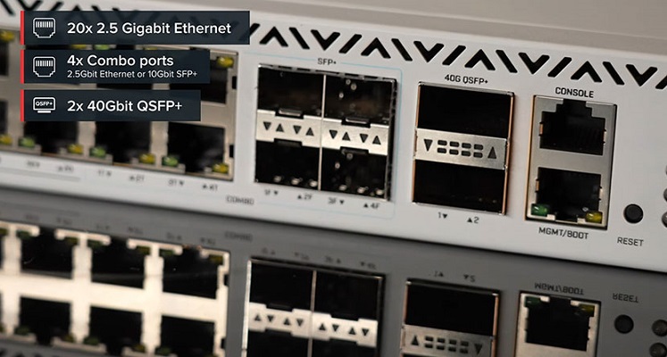Bộ chuyển mạch CRS326-4C+20G+2Q+RM có số lượng cổng 2,5 Gigabit đáng kinh ngạc, cổng combo và thậm chí cả một cặp QSFP+ 40 Gbps. Công cụ thay đổi cuộc chơi cho mạng doanh nghiệp… với mức giá bằng một chiếc điện thoại thông minh!