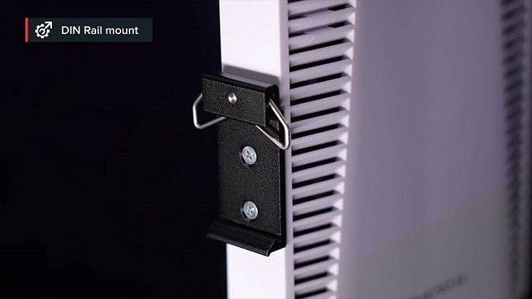 Switch bao gồm một giá đỡ thanh ray DIN tiện lợi ở bên cạnh và các điểm gắn vít tiêu chuẩn ở mặt sau, cho phép lắp đặt ở mọi nơi. Hơn nữa, giá đỡ thanh ray DIN bên cạnh có thể được gắn ra phía sau mặt lưng thiết bị.