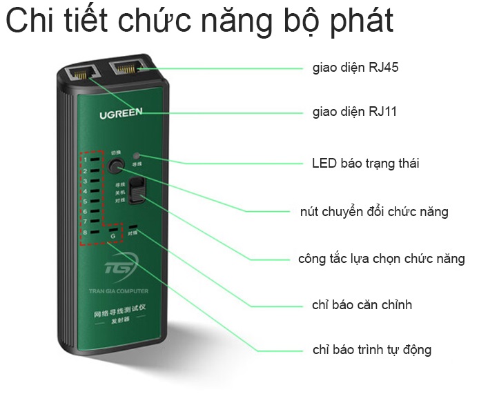 | Thiết bị kiểm tra tín hiệu RJ11, RJ12, RJ45 Network Cable Tracker Ugreen 10951 | ||||