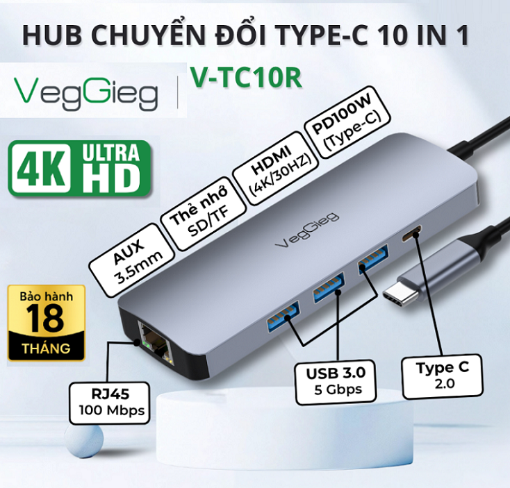 Cổng Chuyển Đổi Đa Năng Type-C 10 iN 1 (V-TC10R)