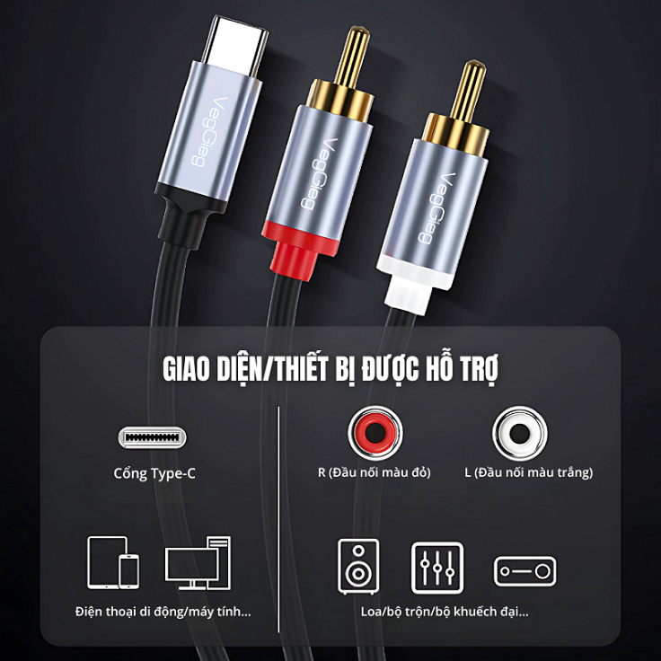 Tương thích linh hoạt: Kết nối được với hầu hết thiết bị có cổng USB-C và thiết bị âm thanh RCA (Trắng – Đỏ).