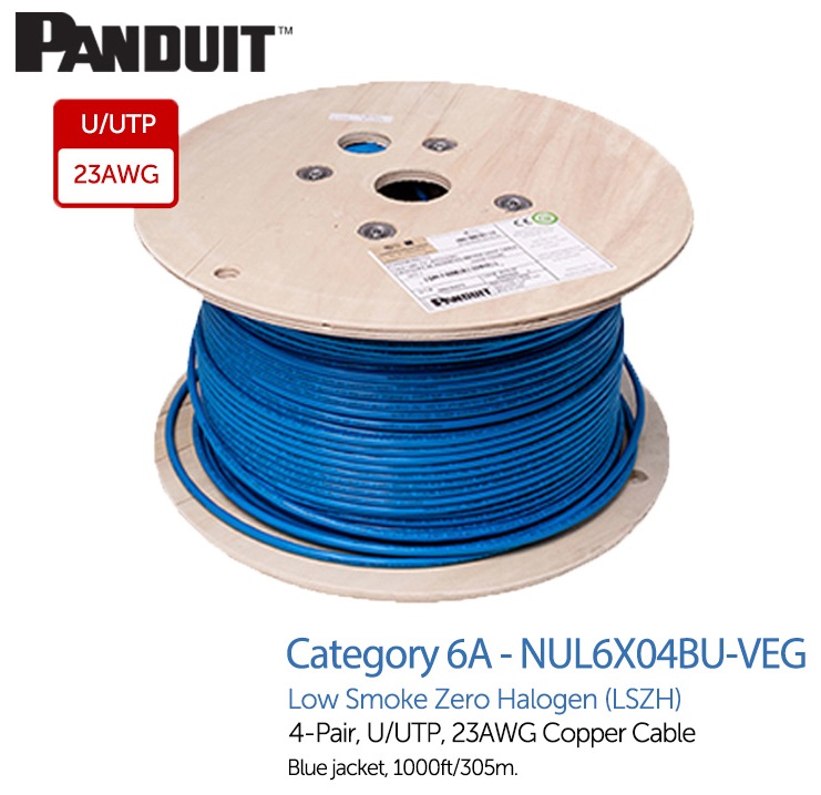 | Cáp mạng Cat6A U/UTP LSZH Panduit _ NUL6X04BU-VEG _ màu xanh 305M | ||||