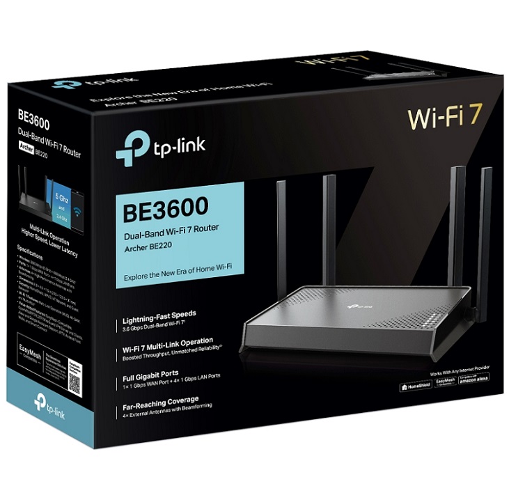Bộ Phát WiFi7 TPLink Băng Tần Kép Archer BE220 BE3600Mbps | ||||