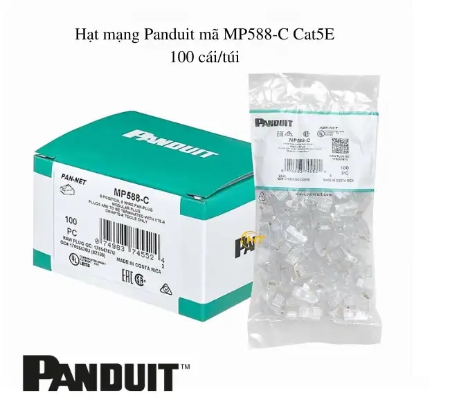 Trong hệ thống mạng nội bộ, hạt mạng (đầu RJ45) đóng vai trò then chốt trong việc đảm bảo tín hiệu ổn định giữa các thiết bị kết nối như switch, router, máy tính, camera hay điện thoại IP. Sản phẩm hạt mạng Panduit MP588-C chuẩn Cat5E hiện là lựa chọn hàng đầu được các kỹ sư tin dùng nhờ thiết kế chính xác, truyền dẫn ổn định và độ bền cao.